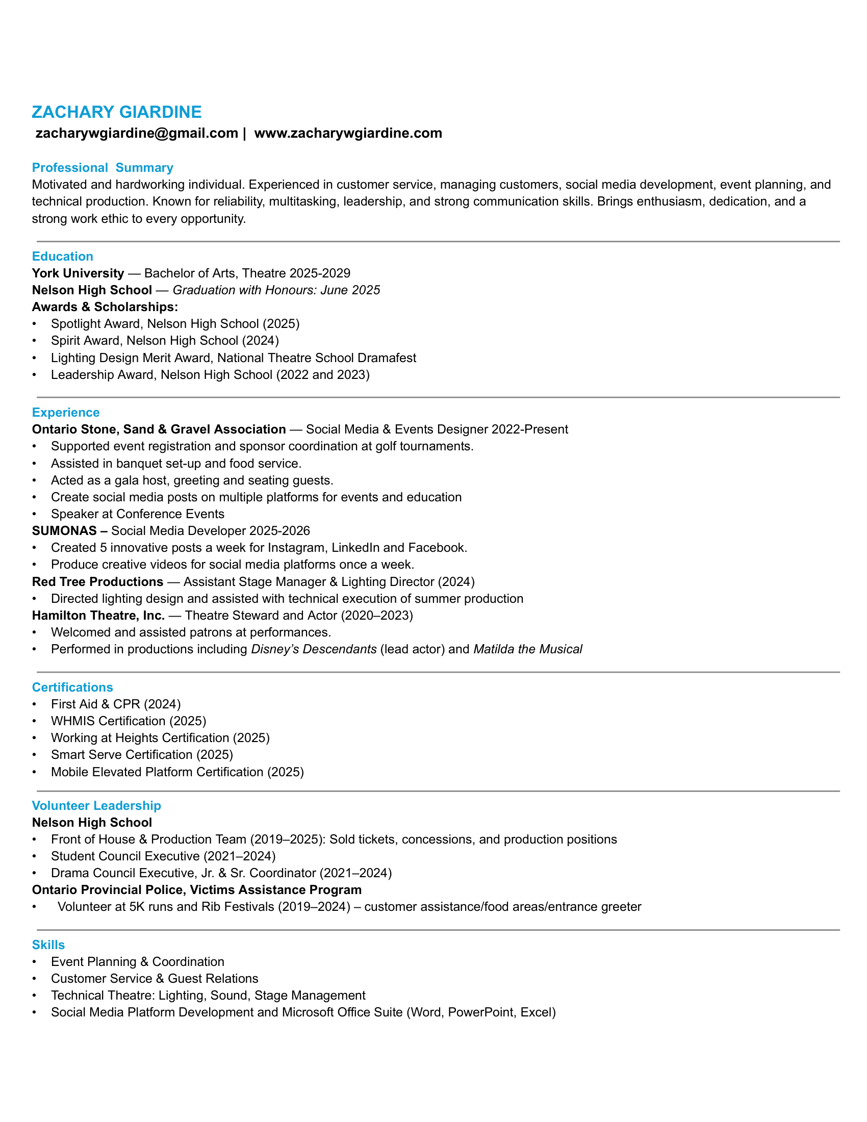 Dustin Jordway, Former Chairperson of Hamilton Theatre